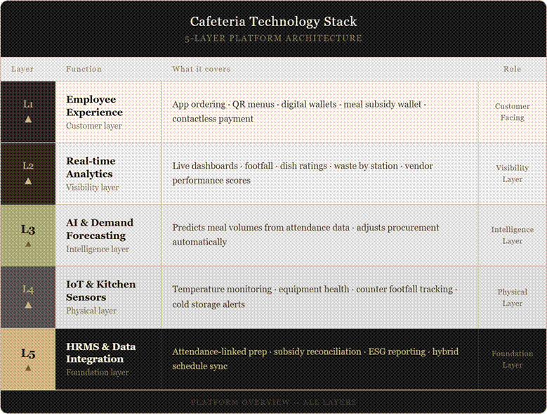 This is the layer where food catering stops being a service and starts becoming a managed, measurable business function. For GCC clients with quarterly ESG reporting, a demonstrable reduction in food-related carbon output has become a core deliverable that smart food service platforms are now built to support.